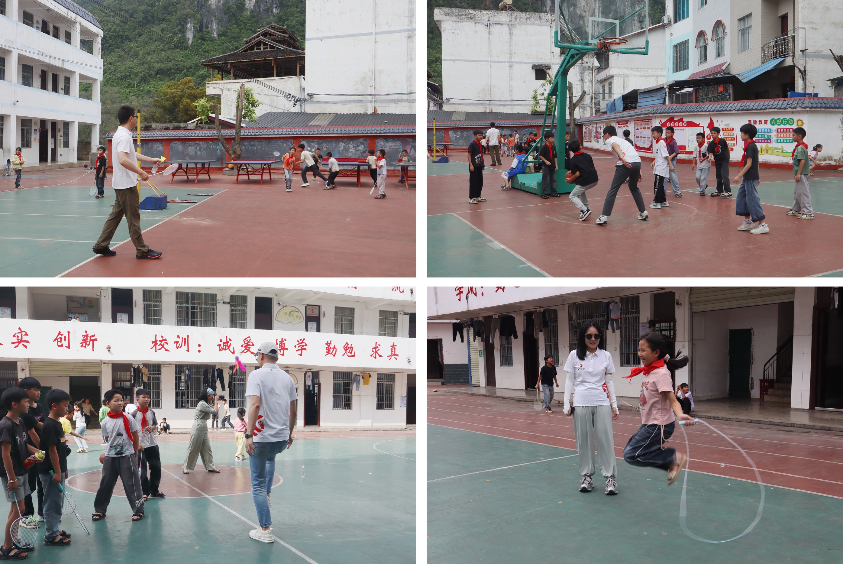 舞臺上,孩子們載歌載舞,用最純真的方式歡迎遠(yuǎn)道而來的我們;操場上,團(tuán)隊(duì)成員與孩子們一起打羽毛球、打籃球、踢毽子、跳繩等,歡笑聲在山間回蕩。一次次擊掌,一聲聲歡呼,是彼此心與心之間最自然的連結(jié)。