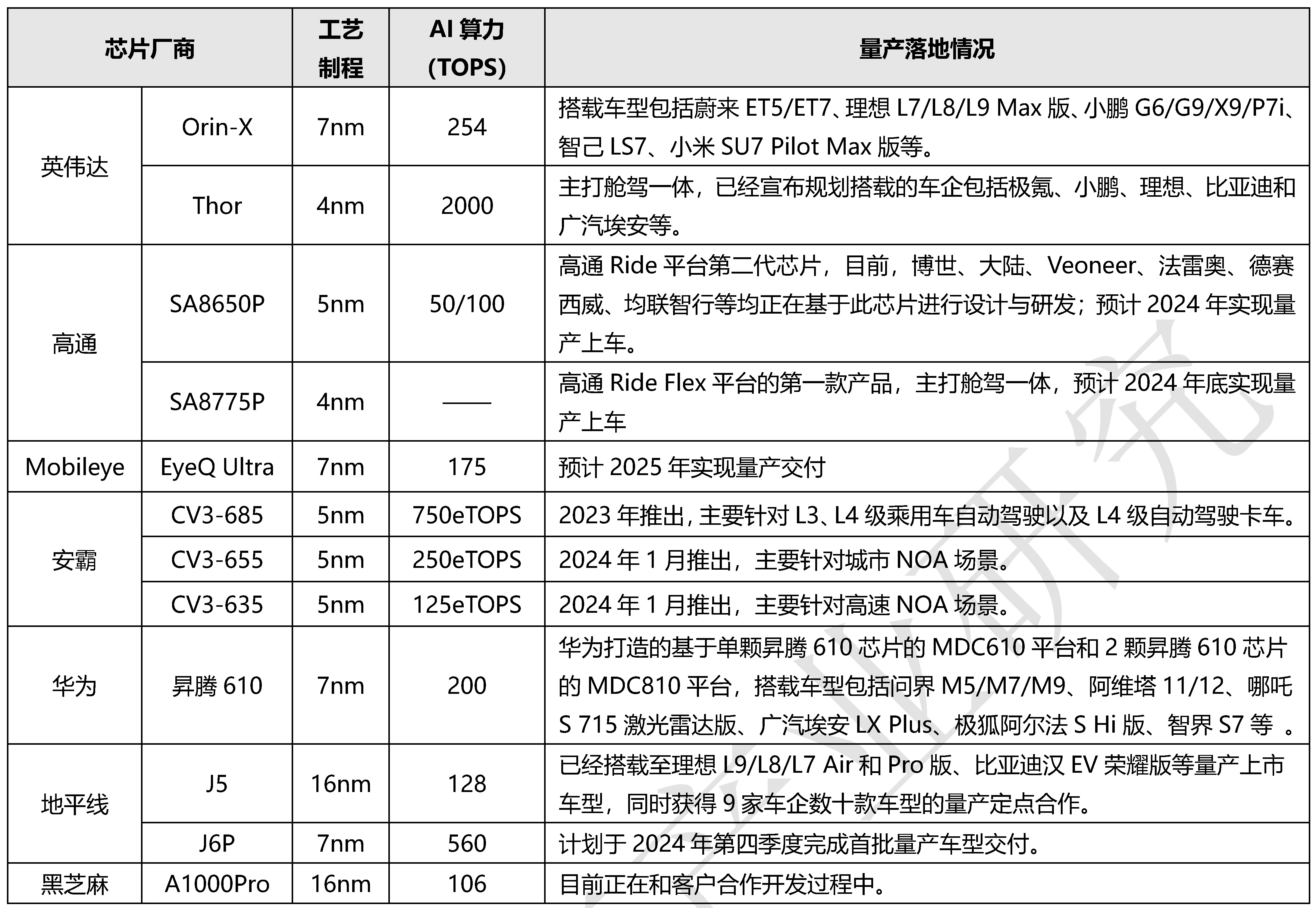 1、智能駕駛SoC芯片競(jìng)爭(zhēng)格局