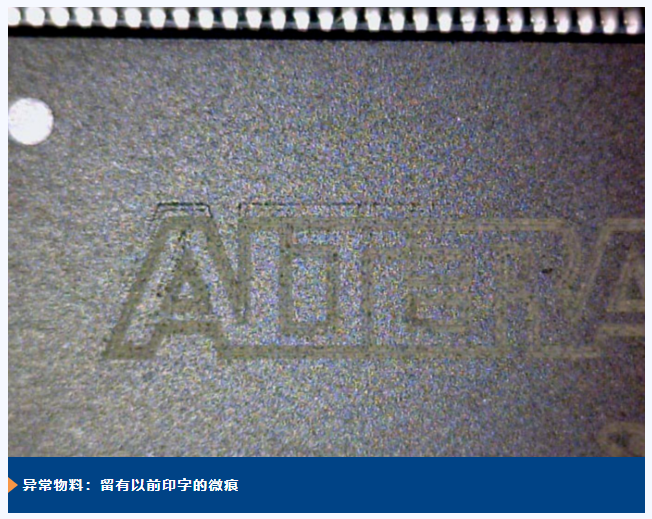 1、打磨重標(biāo)現(xiàn)在的器件絕大多數(shù)采用激光打標(biāo)或用專用芯片印刷機(jī)印字,字跡清晰且難以擦除;而翻新元器件會(huì)將元器件表面原有的標(biāo)識(shí)、型號(hào)、參數(shù)等信息打磨掉,重新打上虛假的內(nèi)容。經(jīng)過打磨的元器件表面往往會(huì)有明顯的痕跡,比如光澤不均勻,存在細(xì)微的劃痕等。
