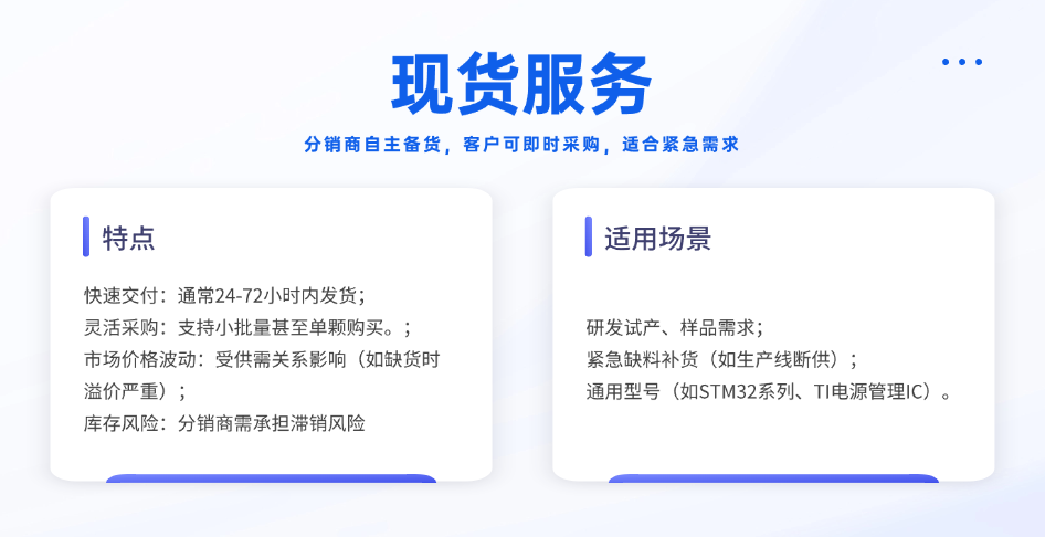 現(xiàn)貨服務(wù)是半導體分銷商提升競爭力的重要手段。在市場需求瞬息萬變的當下,擁有充足的現(xiàn)貨庫存能夠快速響應(yīng)客戶的緊急需求,為客戶節(jié)省時間成本,提升客戶滿意度。