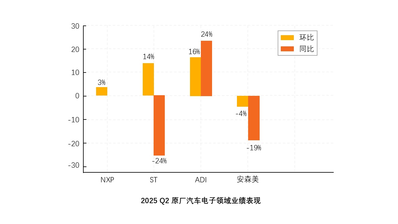 ADI:Q2汽車營(yíng)收同比增長(zhǎng)24%,環(huán)比增長(zhǎng)16%,訂單的增長(zhǎng)主要受關(guān)稅調(diào)整前需求提前采購(gòu)。其在中國(guó)汽車市場(chǎng)增長(zhǎng)明顯,預(yù)計(jì)下半年汽車SAR需求將走弱。