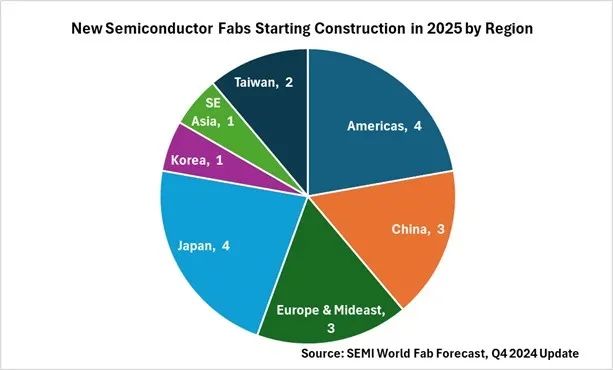 上周,國際半導(dǎo)體產(chǎn)業(yè)協(xié)會(huì)(SEMI)發(fā)布全球晶圓廠預(yù)測季度報(bào)告。報(bào)告顯示,2025年全球?qū)⒂瓉硪徊ňA廠建設(shè)熱潮,預(yù)計(jì)屆時(shí)將有18座新的晶圓廠啟動(dòng)建設(shè)。這些新項(xiàng)目包括15座12英寸(300mm)晶圓廠和3座8英寸(200mm)晶圓廠,其中大部分預(yù)計(jì)將于2026年至2027年開始運(yùn)營。